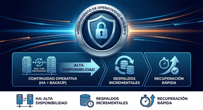 (HA + Backup) Alta disponibilidad + respaldos incrementales + recuperación rápida.